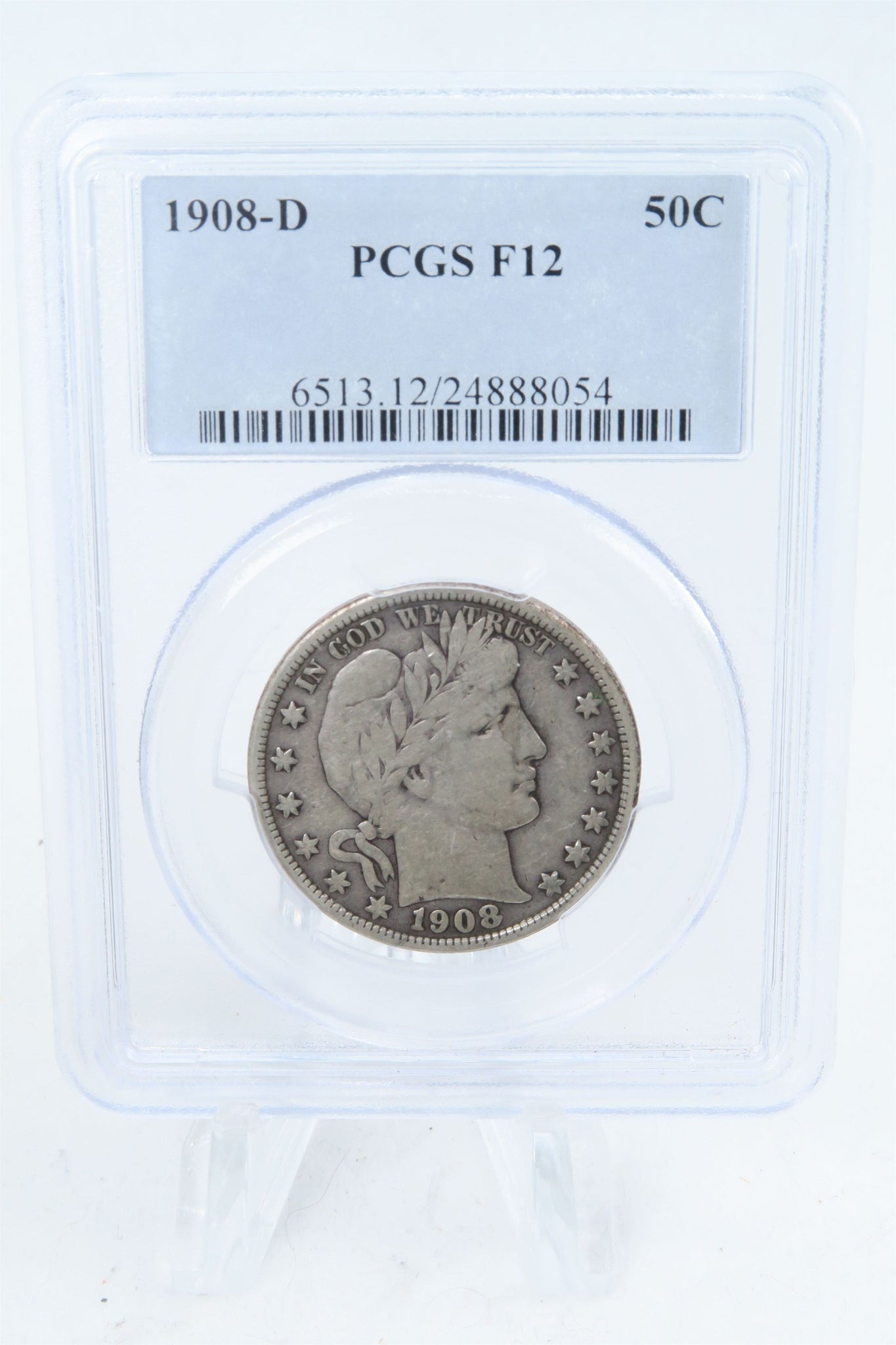 1908-D PCGS F12 Barber Half Dollar Business Strike 50C